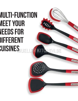 - 7 Essential Pieces: Includes a spaghetti ladel, solid spoon, solid spoon, ladel, slotted skimmer, whisk and solid turner to meet all your cooking needs.