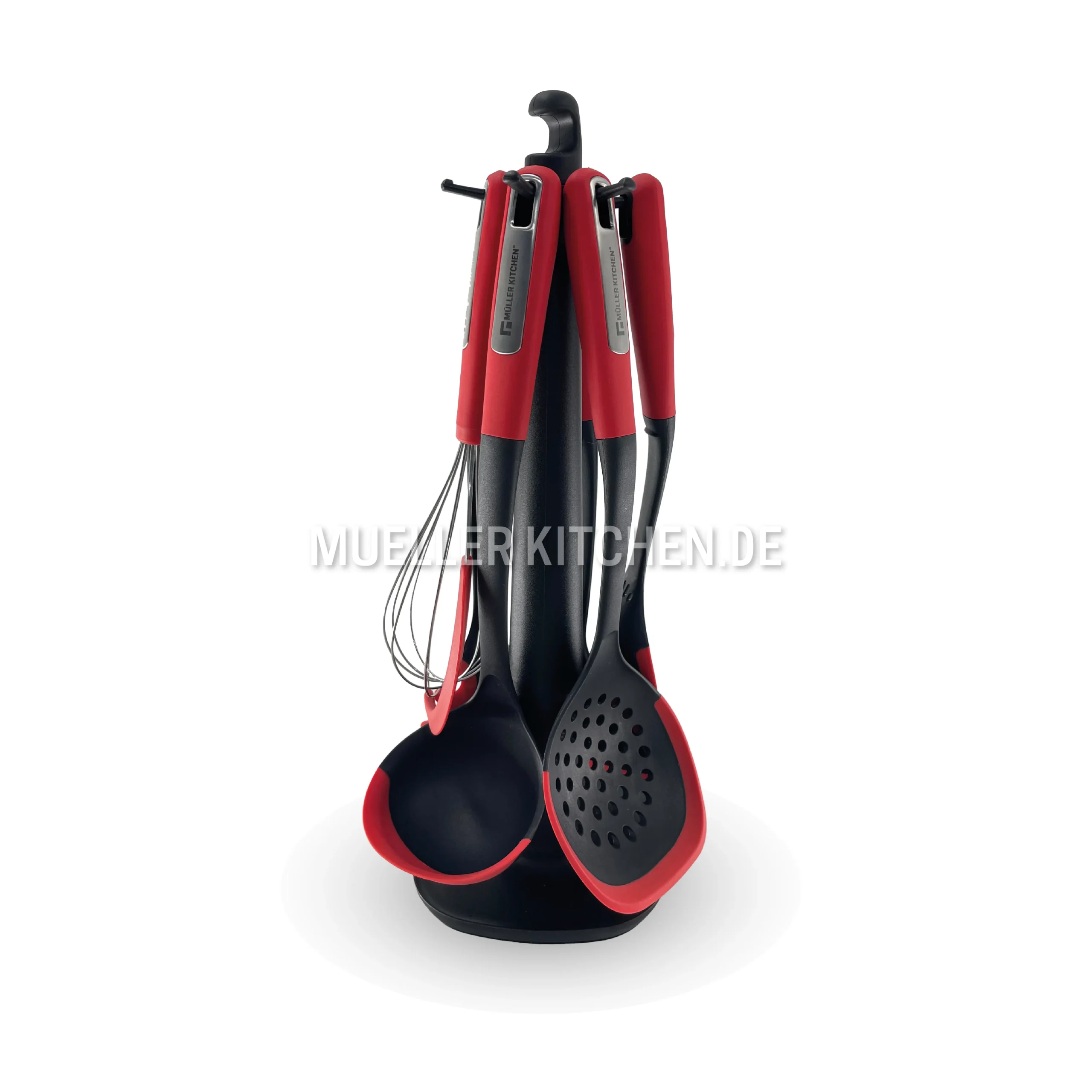 This versatile set includes a spaghetti ladel, solid spoon, solid spoon, ladel, slotted skimmer, whisk and solid turner, making it suitable for various kitchen tasks, From stirring and mixing to turning and serving.